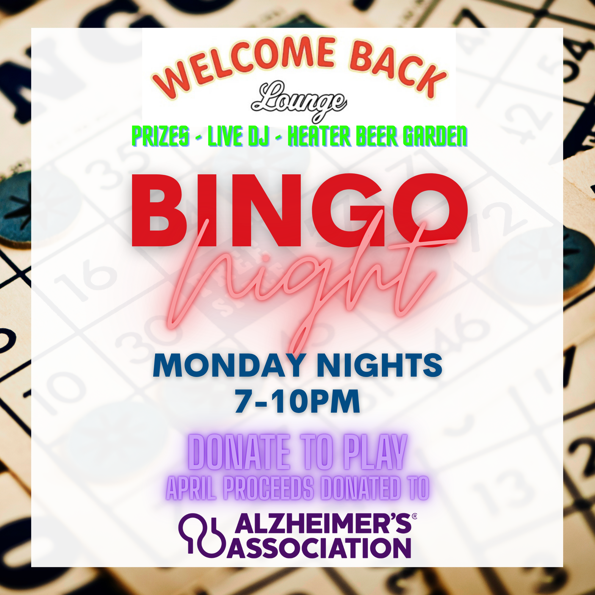 Bingo is every Monday night, starting at 7pm. We recommend guests to arrive around 6:30pm/6:45pm to get bingo cards, get a table and order any food/drink before the games begin. We play 10 games a night, and each game has a prize!